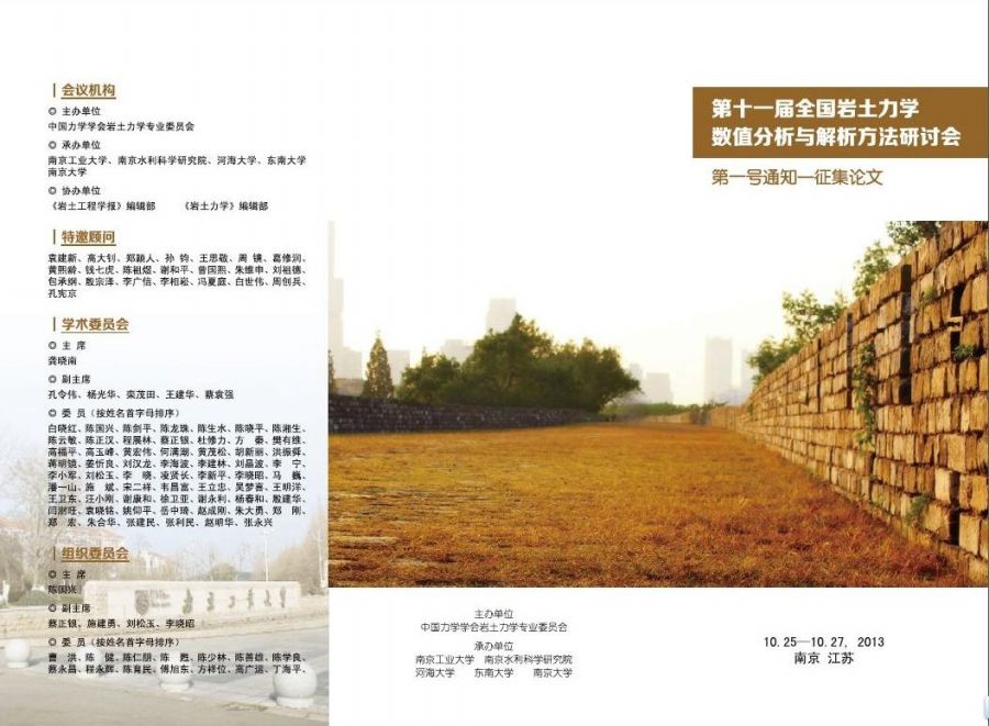 第十一届全国岩土力学数值分析与解析方法研讨会征文通知