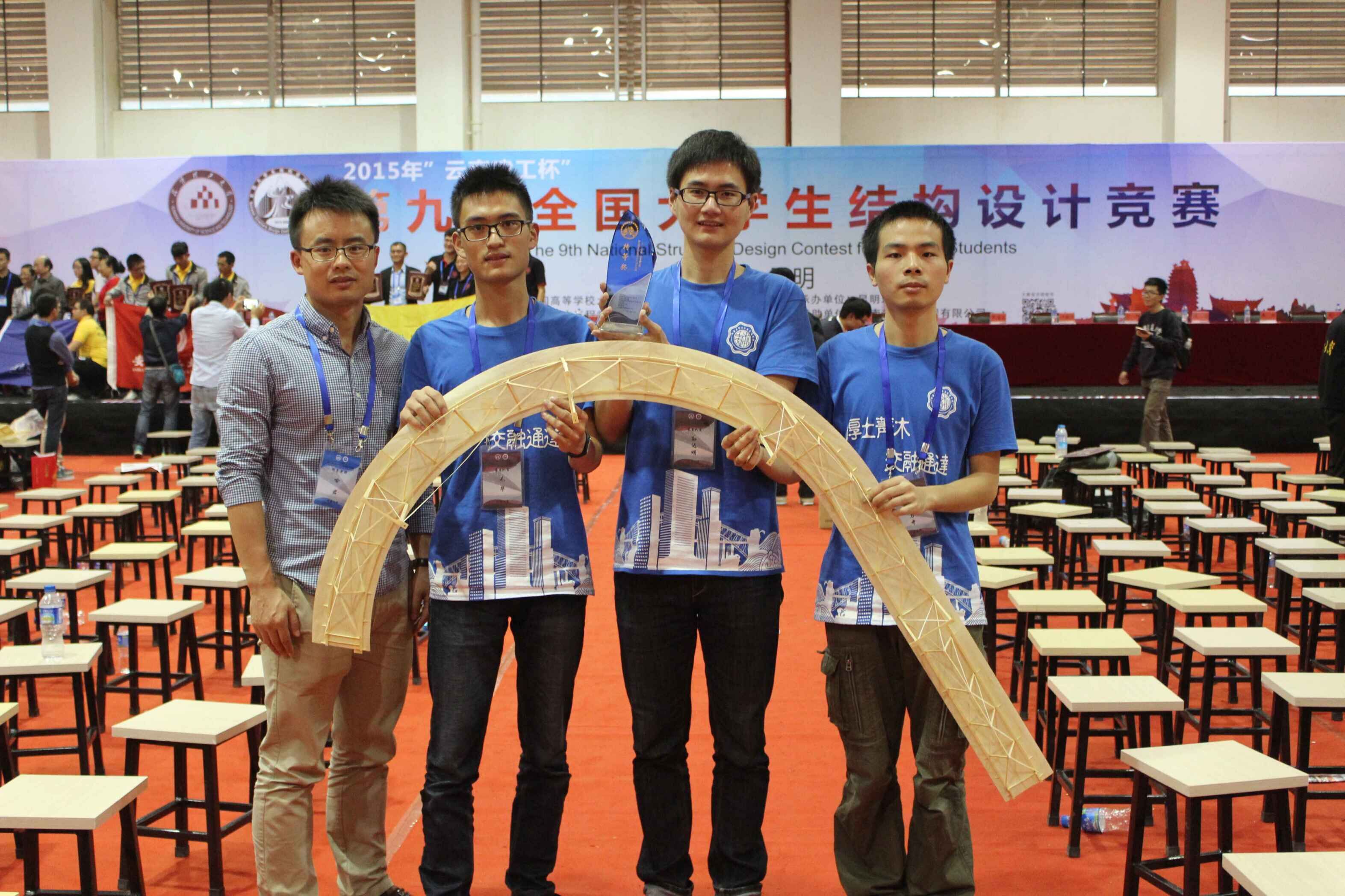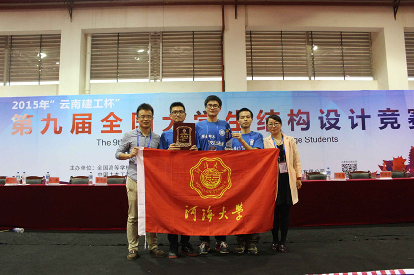 2015年10月14日至10月18日,第九届全国大学生结构设计竞赛在昆明理工大学举行。在学院精心组织和指导教师(喻君、胡锦林)辛勤辅导下,由我院土木工程专业2012级本科生罗力中、2013级本科生孙达明、毛华组成的河海大学代表队以第一名的成绩获得唯一特等奖,创河海土木专业乃至江苏高校土木专业在本项赛事上的最佳赛绩。
