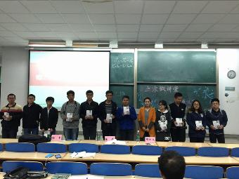 讲座结束后,由辅导员张洁老师主持了“学院赠送2014级学生专业书籍”仪式,并邀请两位学长向大家颁发书籍,本次学院赠送给2014级同学的书籍是《诗情画意谈力学》和《拉家常说力学》。学院赠书活动,是学院为了鼓励同学们在课程学习中勤学巧思而从今年起开始的定期活动。以后每年都会举行一次,向各年级本科生赠送大家在课程学习中有显著助力的经典书籍。