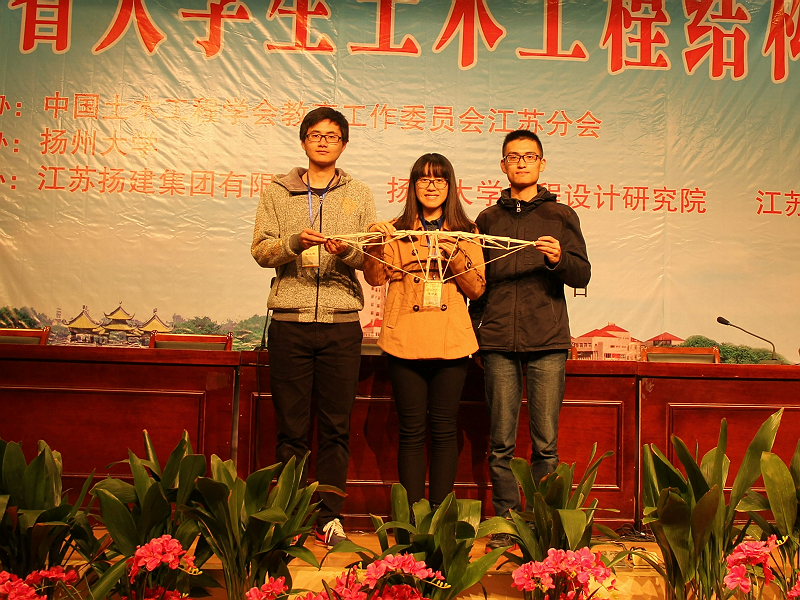 2015年11月20日至21日,2015年江苏省大学生土木工程结构创新竞赛在扬州大学举行。我院参赛同学在学院精心组织和指导教师辛勤辅导下,发挥出色,获得特等奖1项(第一名),二等奖2项,刷新了河海大学在本赛事上的历史最好赛绩。