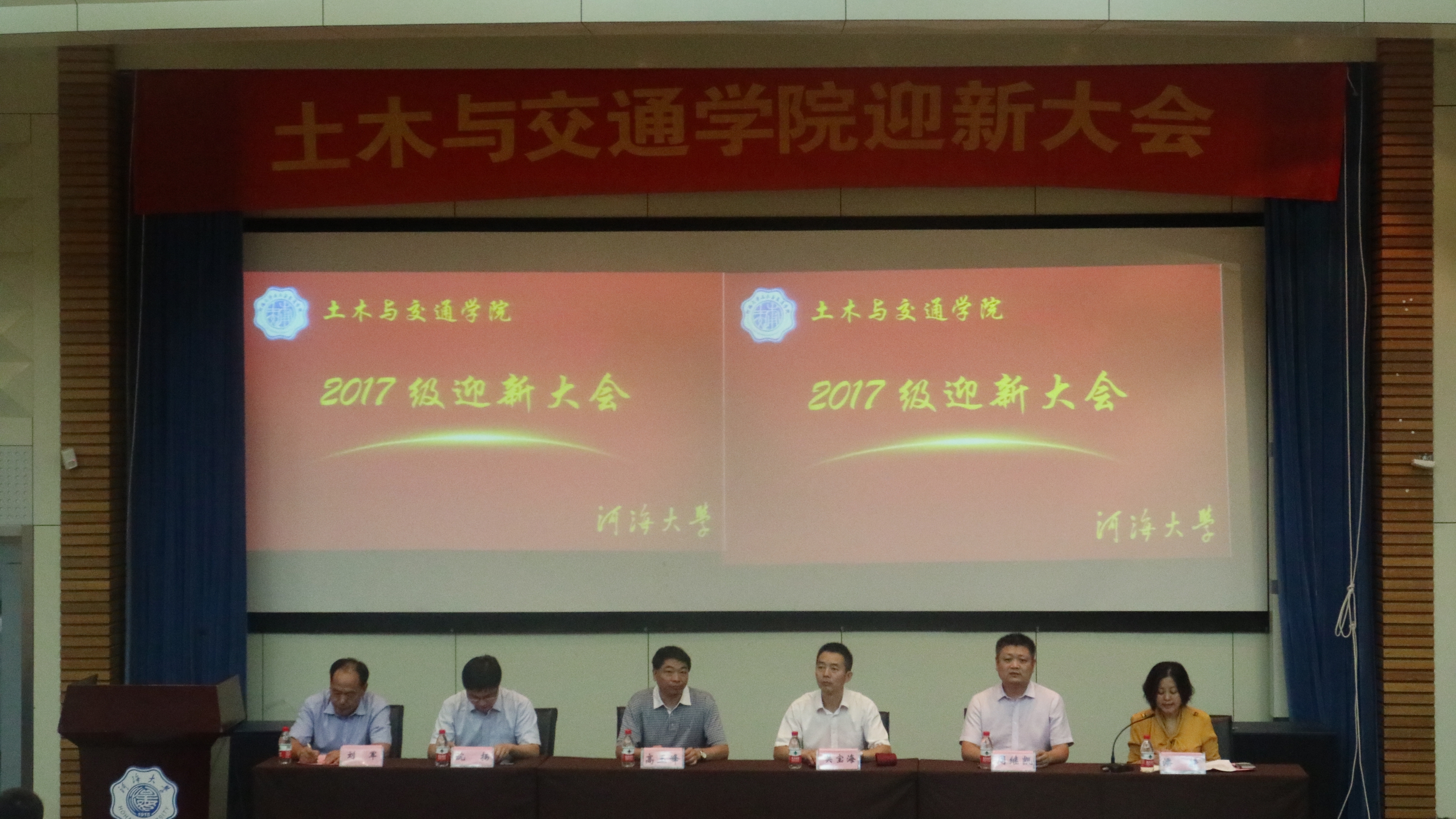 为迎接2017级新生的到来,加深新生对学院及专业的了解程度,引导新生更好地适应大学生活,2017年9月9日下午6:30,土木与交通学院2017级本科生迎新大会暨入学第一课在江宁会议中心二楼报告厅举行。出席本次会议的有学院院长高玉峰教授、学院党委吴宝海书记、副院长沈扬教授、副院长周继凯教授、副院长刘军教授、学院党委潘静副书记、土木工程系主任张华老师、交通工程系副主任李锐老师、本科教学秘书、各级辅导员、17级各班班导师、班导师助理和17级全体本科生。会议由潘静副书记主持。