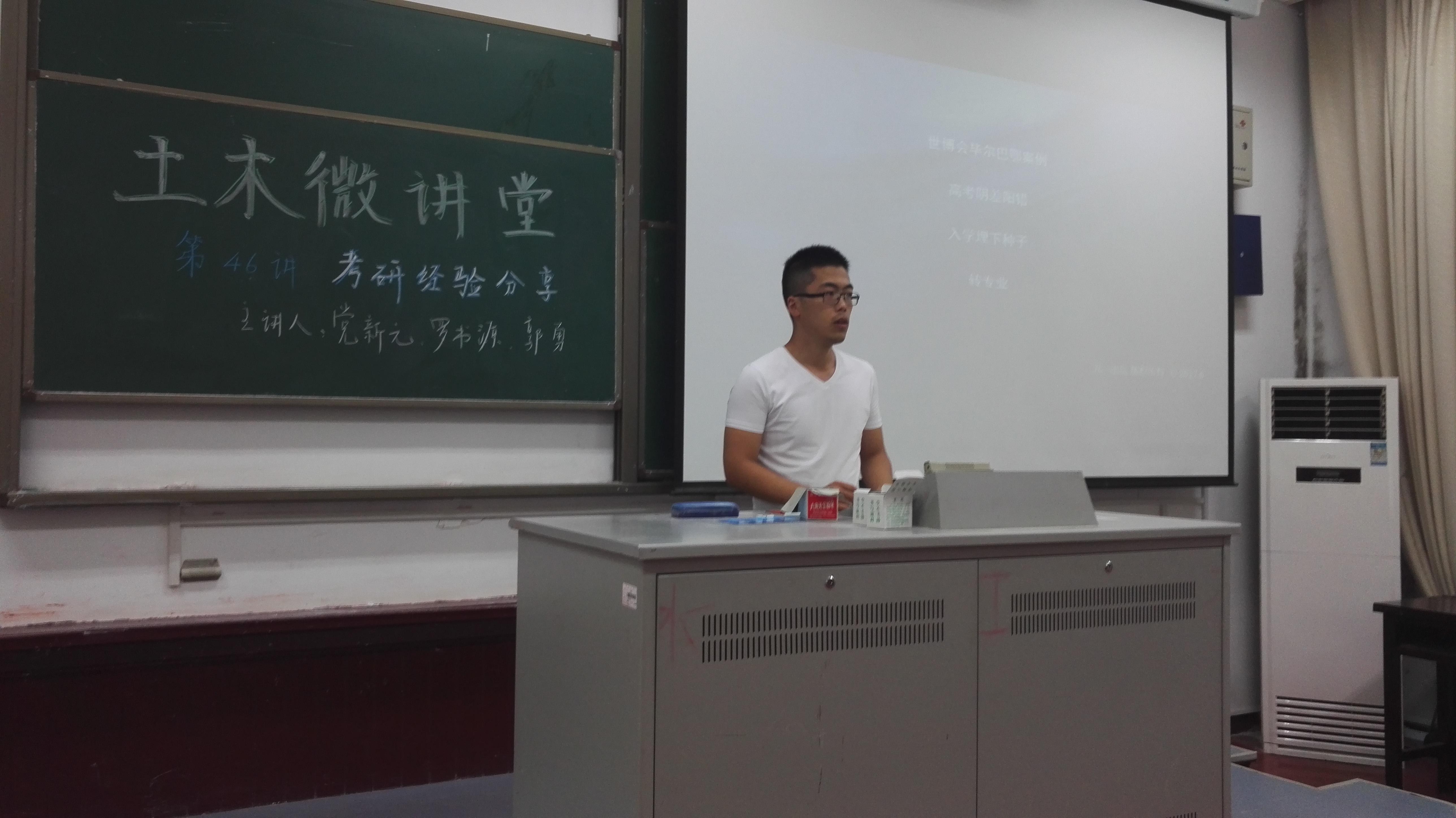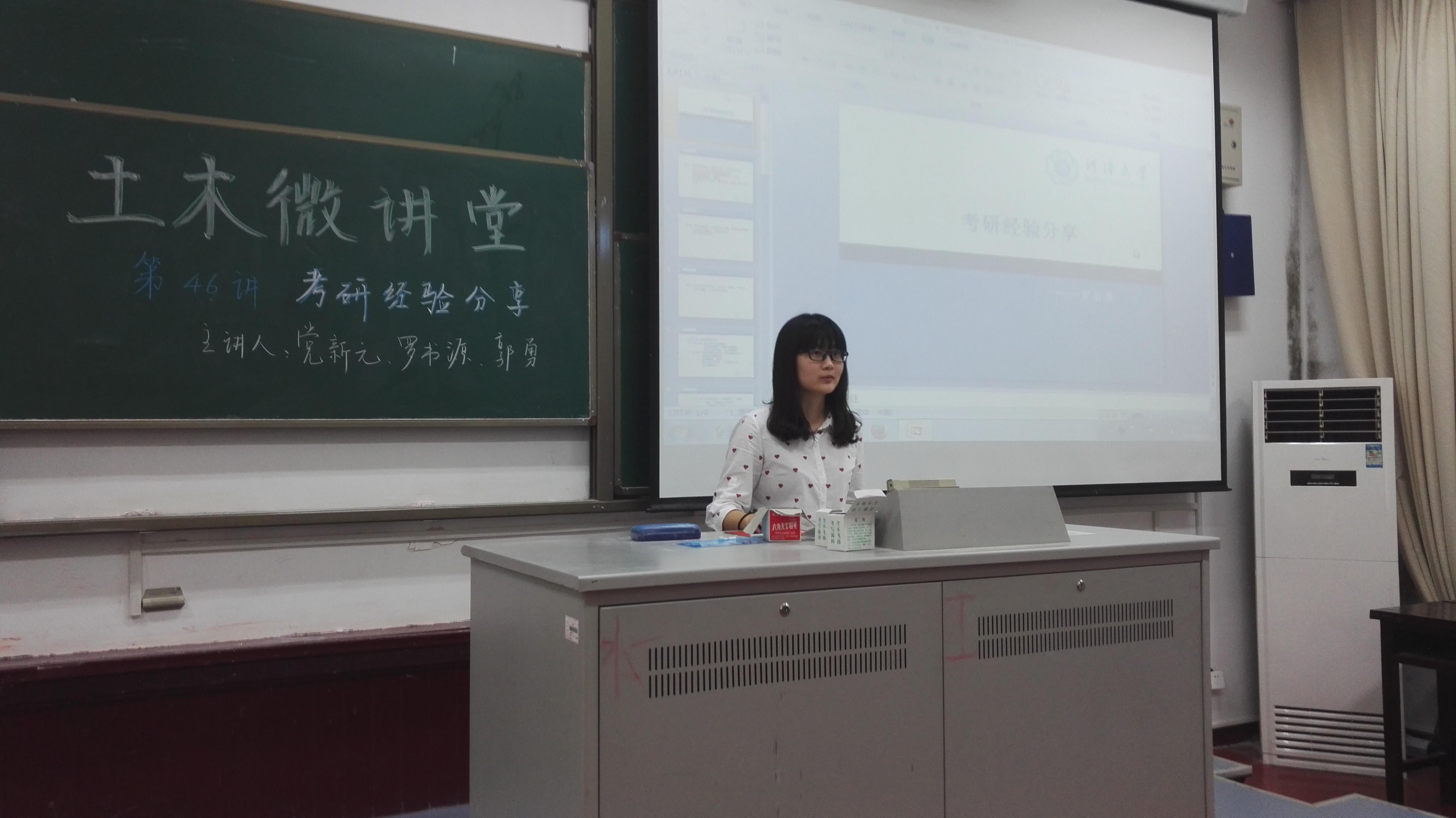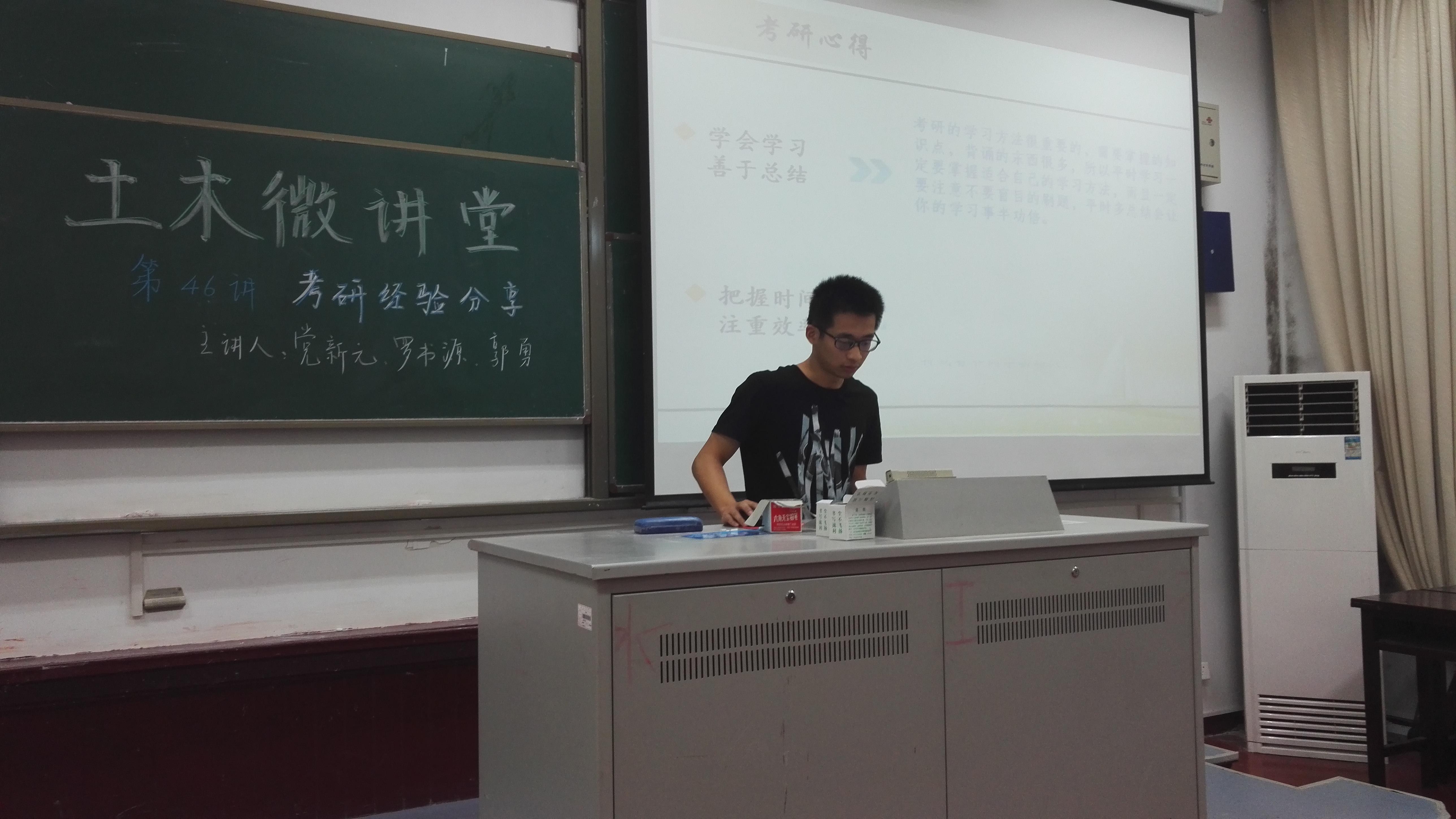 2017年6月21日中午12点30分,土木与交通学院土木微讲堂第四十八讲之“考研经验分享”在我校本部工程馆101成功举办。本次微讲堂邀请到了13级土木工程本科生郭勇、党新元,13级交通工程本科生罗书源三位同学作为主讲人,为同学们分享他们考研的经验。