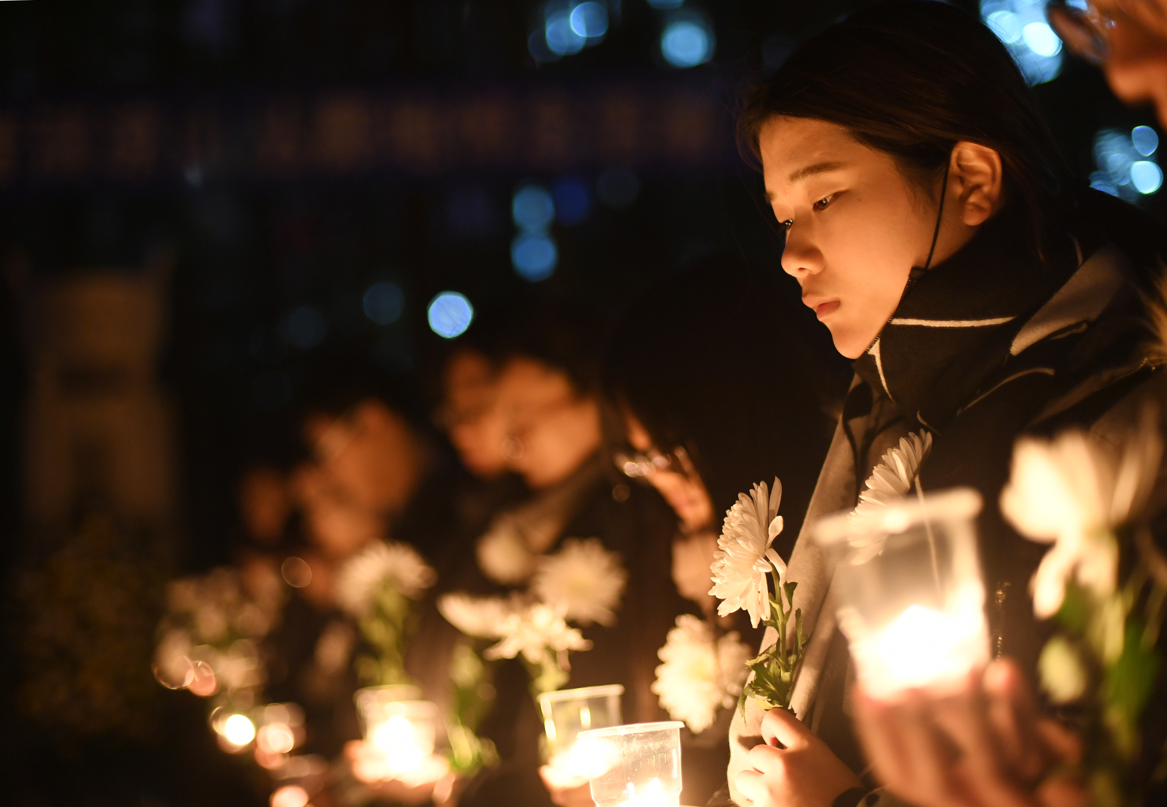 同学们在纪念碑前用蜡烛摆上了“12.13”和“80”的字样。5点30分,潘静书记与吴昊书记带领两个班级全体同学来到纪念碑前,大家身着黑色服装,胸前佩戴鲜花,手捧鲜花与蜡烛,围绕“12.13”、“80”的蜡烛字样站立,低头默哀,用蜡烛寄托对大屠杀死难同胞的哀思,用鲜花表达对不甘屈辱奋起反抗的斗士的敬重。默哀结束后,大家有序绕行纪念碑一圈,献上手里的鲜花,部分同学手持亲手折叠的纸鹤,表达了对南京大屠杀死难者的祈福以及对世界和平的美好祝愿。