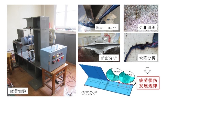 1)钢桥疲劳、维护。研究内容包括:钢桥面板疲劳损伤机理研究及评价方法研究;钢桥疲劳裂 纹检测及维护技术研究;钢箱梁、缆索与吊杆疲劳、腐损伤评定及维护技术研究。