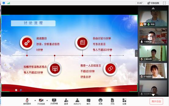 本次选拔面试共有41名19级候选学员参加,面试分为自我介绍及基础问答、无领导小组讨论两个环节。首先,同学们先进行了自我介绍,然后进入基础知识问答环节,基础类题目主要包含学校校史校情,时事政治,疫情防控知识以及新时代学生干部的责任与担当等。面对提出的问题,候选学员们都能够结合自身情况认真分析,沉着应答。