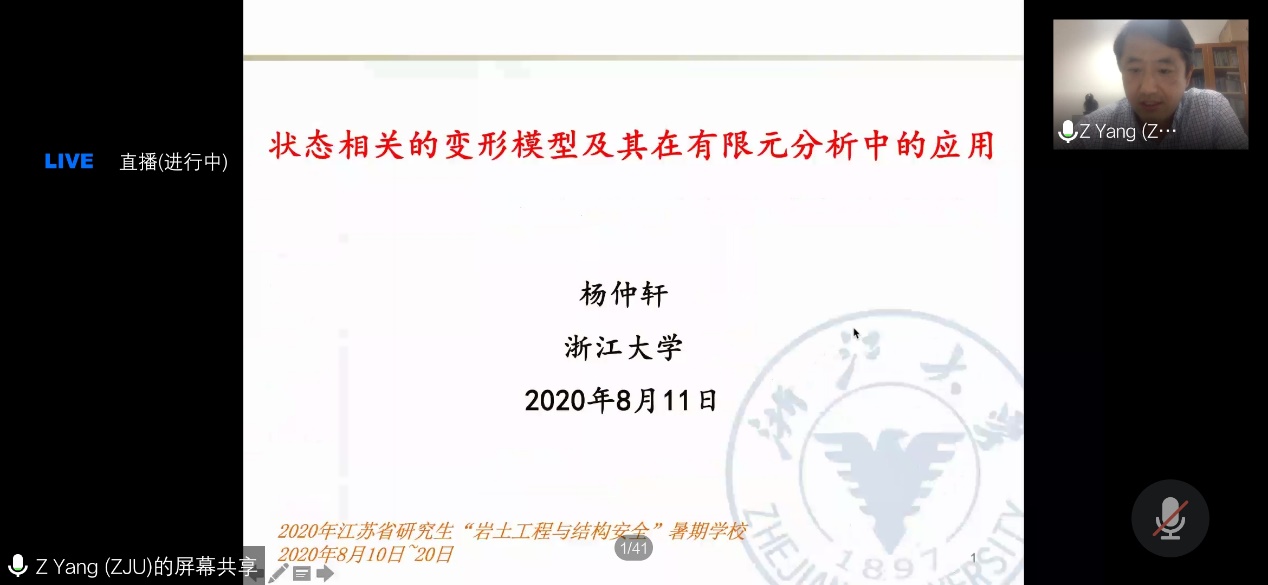 第二场主讲人为太阳集团tyc151孔纲强教授,孔教授用生动而又风趣的语言对能量桩结构及技术原理进行了详细的介绍。结合典型工程案例,孔教授让学员们认识到能量桩在市政路面工程除冰融雪、建筑空调节能系统、高铁隧道温控系统和地下电力隧道温控系统中均可以得到较好的工程应用,是一项节能减排的绿色环保技术。孔教授汇报完毕后,与线上线下的学员们就能量桩耐久性进行了热烈地讨论,对能量桩是否会在循环荷载作用下产生疲劳破坏这一问题进行了细致的解答,最后为学员们解决了温差和能量桩中埋设的管道对能量桩应力计算的影响这一疑问。孔老师将科研和工程结合的实干风格感染了暑期学校的同学们,在大家的掌声中结束了第二场讲座。