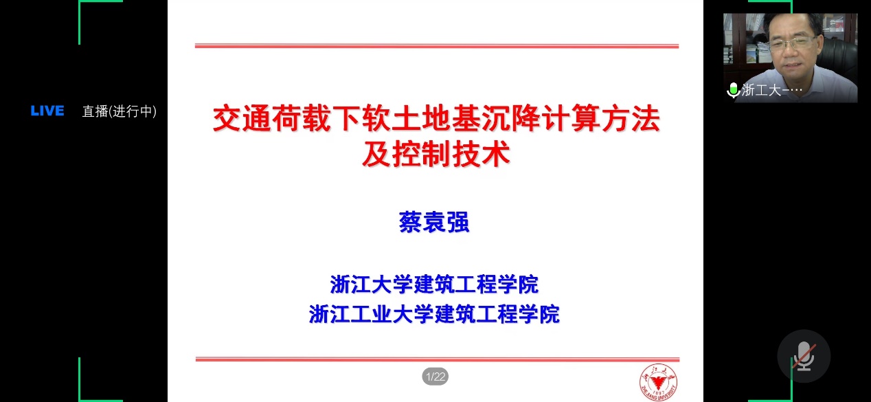 上午第二场学术报告的主讲人是浙江工业大学蔡袁强教授,他的授课题目是《交通荷载下软土地基沉降计算方法及控制技术》。蔡教授分析了交通荷载下软黏土地基沉降过大的原因以及国内外研究存在的不足之处,通过开展长期循环加载下软粘土动力特性试验研究,对交通荷载应力路径下土体动力特性开展理论分析,提出了土体界限动应力水平。通过申嘉湖高速软基道路沉降分析,让学员们对交通荷载下软基沉降计算有了更清晰的认识。学员们在报告结束后与蔡教授进行了热烈的交流,蔡教授关于循环荷载实验中循环次数取值的依据,实际工程中的非饱和土对循环荷载实验的影响等问题的回答精彩绝伦,报告会在热烈的掌声中结束。