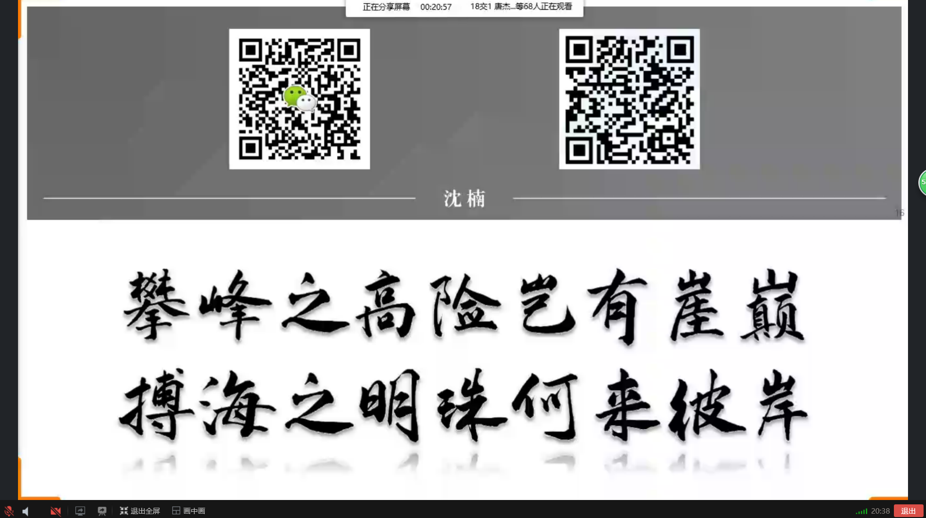 首先,沈楠同学从自己的经历讲起,鼓励同学们勇于挑战各类竞赛活动,拓宽眼界。从自己大二不理想的比赛经历,到大三的成功,逐渐步入正轨,沈楠同学告诉同学们要努力抓住机会,在空窗期不断积累,奠定好基础,做好充足的准备,等到时机来临的时候,才能先他人一步获得成功,站到更高的平台上。除此之外,沈楠同学分享了几个学习Photo shop制作PPT等课外技能的网站,并向同学们介绍了能够接触到创训科研的一些途径。之后,沈楠同学倡议同学们要充实课余生活,自先沉稳,而后去探索自己的内心。最后,沈楠同学总结了自己的发言,鼓励同学们要奋斗不止,自强不息。如此,你的每一份努力都不会被辜负。