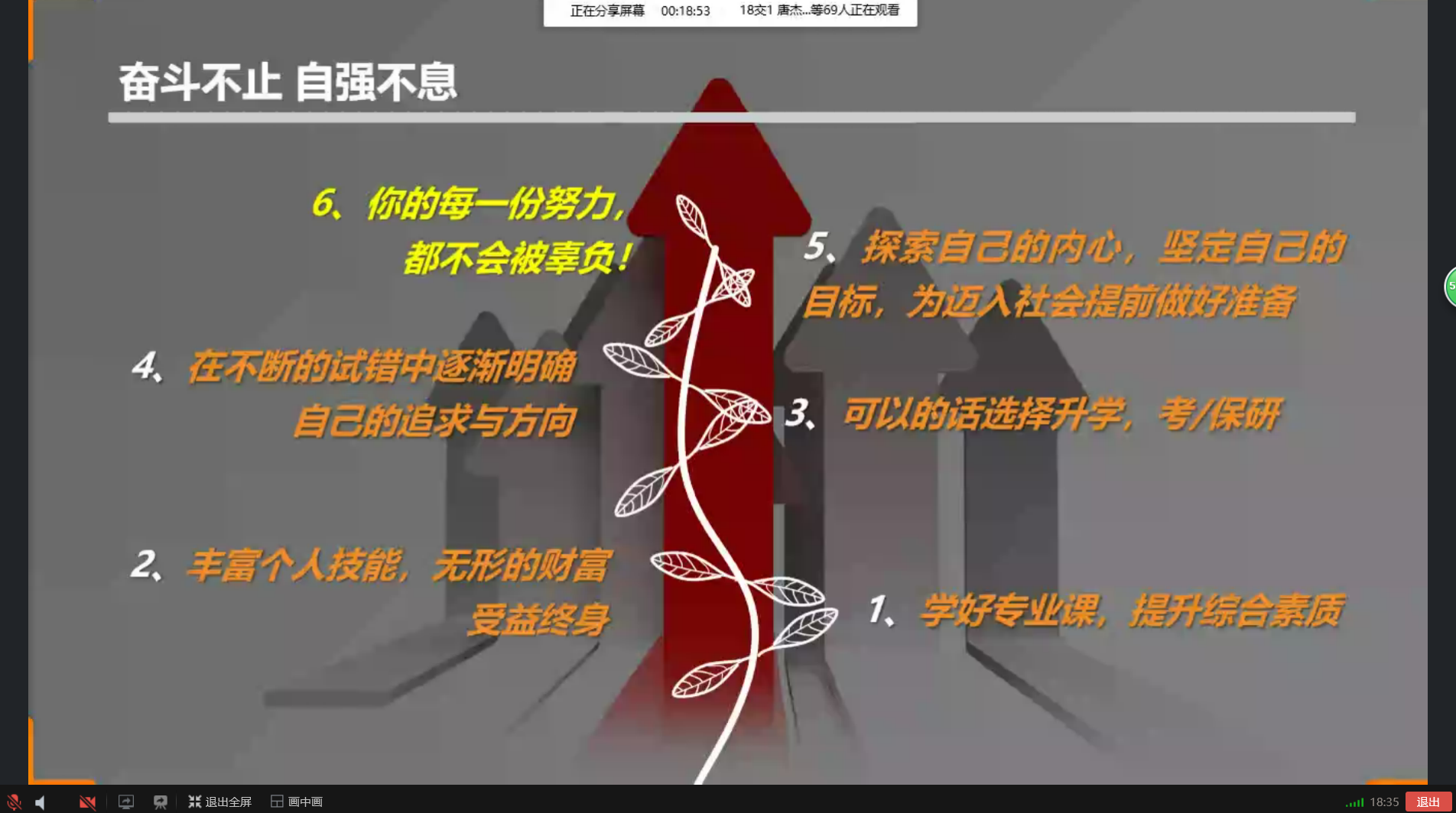 本次微讲堂让同学们对自己的职业生涯有了更加清晰的认识,相信同学们能从三位毕业生身上收获到经验,并开始逐步给自己制订更完善清晰的职业规划。