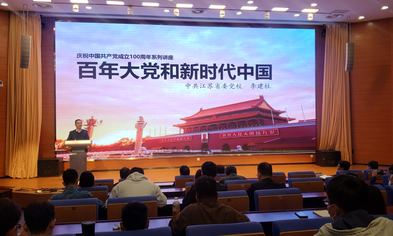 3月29日下午,土木与交通学院党委邀请中共江苏省委党校哲学教研部李建柱教授作党史学习教育专题报告。学院党委委员、教师党员和学生党员代表130多人聆听了报告。院党委书记汪建新主持报告会。