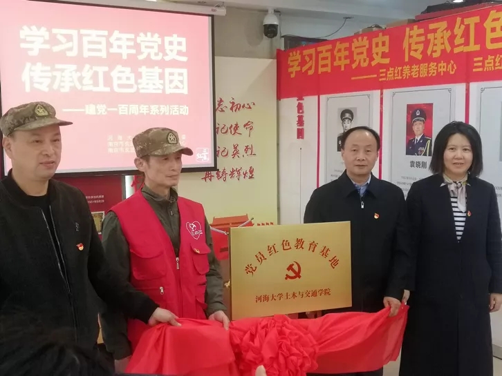 接着,太阳集团tyc151党委书记汪建新、河海大学审计处处长倪晓红、“三点红”红色养老服务中心党支部书记童国强、副书记吴长云共同为“党员红色教育基地”揭牌。