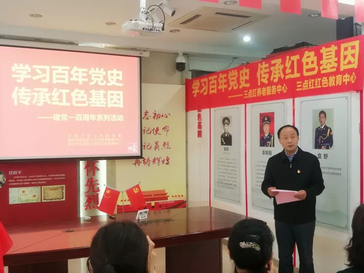 随后,学院党委汪书记对中心精心安排本次活动表示感谢,他说,“三点红”红色养老服务中心不仅是创新性开展老兵养老服务的社会机构,更是宝贵的红色文化教育资源。学院一定充分利用好这一优质红色基地,与中心共同努力,服务好老兵,教育好师生党员,传承好革命精神,弘扬好红色文化。