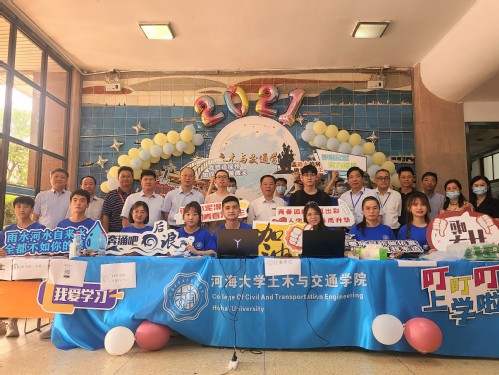 迎新期间,河海大学徐辉校长等一行校领导、土木与交通学院党委领导莅临迎新现场指导工作。徐辉校长亲切询问了土木院新生报到情况,并与正在报到的新生展开了亲切的交流。在温馨的背景墙下,徐校长一行人与现场报到的新生和工作人员一同合影留念。
