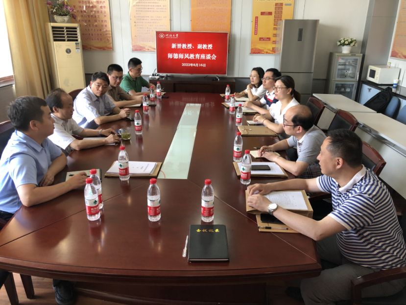 6月16日下午,学院召开新晋教授、副教授师德师风教育专题座谈会,高玉峰院长和8位新晋教授、副教授参加交流座谈。党委书记汪建新主持座谈会。