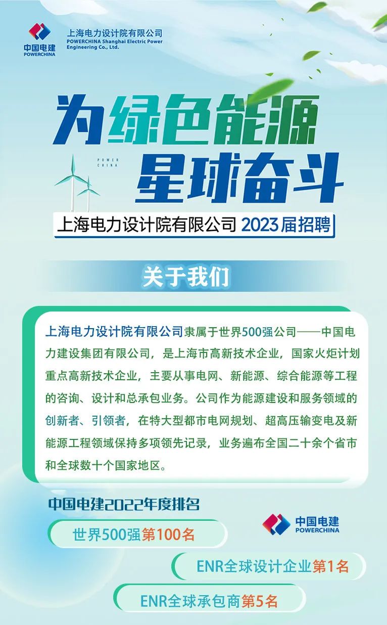 招新 | 上海电力设计院 2023 届招聘正式开启!