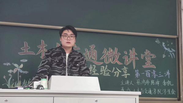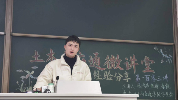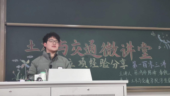 2023年2月28日19:00,由土木与交通学院主办,学院本科生学生会承办的土木与交通微讲堂第一百零三讲之“创训立项经验分享”于致用楼101成功举办。本次微讲堂由土木与交通学院2019级本科生蔡鸿伟、陈璋,2020级本科生李凯担任主讲人,土木与交通学院2021级全体学生聆听了本次讲座。