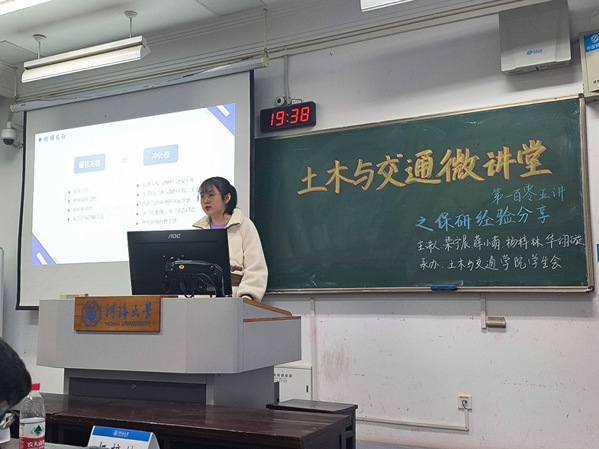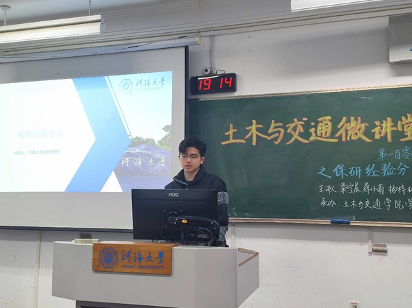 2023年3月17日19:00,由土木与交通学院主办,学院本科生学生会承办的土木与交通微讲堂第一百零五讲之“保研经验分享”于河海大学西康路校区工程馆207成功举办。本次微讲堂有幸邀请到土木与交通学院2019级土木工程专业本科生薛小萌、杨梓林、2019级交通工程专业本科生梁宁晨、华翊璇担任主讲人,土木与交通学院2020级部分学生聆听了本次讲座。