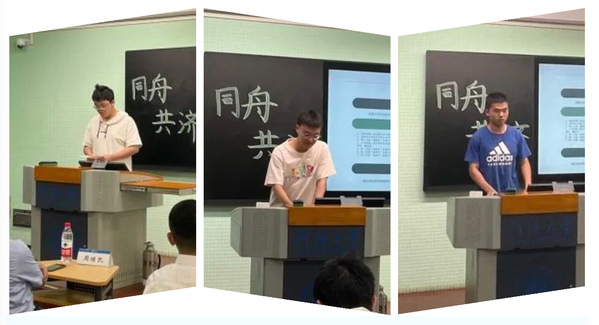 会议伊始,班级团支书王彦雅同学就本学期班级团支部工作进行汇报。随后,周飞扬、叶金喆、张骥翔三位同学分别就专业竞赛和创训实践做经验分享。