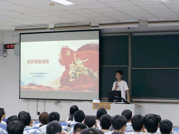 随后,吴其海同学结合《江苏普通高等学校发展党员工作实施细则》和《河海大学发展党员工作全程纪实办法(试行)》为与会同学详细介绍入党流程及注意事项,包括申请入党、入党积极分子的确定与培养考察、发展对象的确定与培养考察、预备党员的接收以及预备党员的教育考察与转正5个环节。