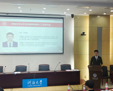 土木与交通学院学生会主席团成员李琛代表学院第十二次学生代表大会筹备委员会作筹备工作报告。报告对本次学生代表大会的主要任务安排与大会候选人竞选条件做了详细介绍,并对全体人员为学生代表大会顺利召开所做的辛苦筹备工作表示衷心的感谢,对学生代表大会成功召开表达热烈祝贺。