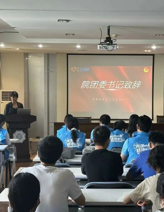 之后,土木与交通学院团委书记李倩老师为宣讲团授旗并发表致辞。