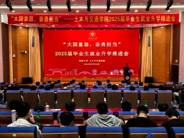 为更好地推进2025届毕业生就业与考研工作,鼓励学生积极就业,增强考研学子的必胜信心,近日,我院于科学会堂召开土木与交通学院2025届毕业生就业升学推进会。土木与交通学院党委副书记赵海伟,土木与交通学院本科2025届辅导员韩新禹,土木与交通学院本科2021级全体学生出席会议。此外,会议还邀请了上海建工一建集团、中建安装集团、中建东方装饰有限公司、中建一局集团一公司、中铁七局集团有限公司、中建八局集团轨道公司共8个行业重点优质单位参加。