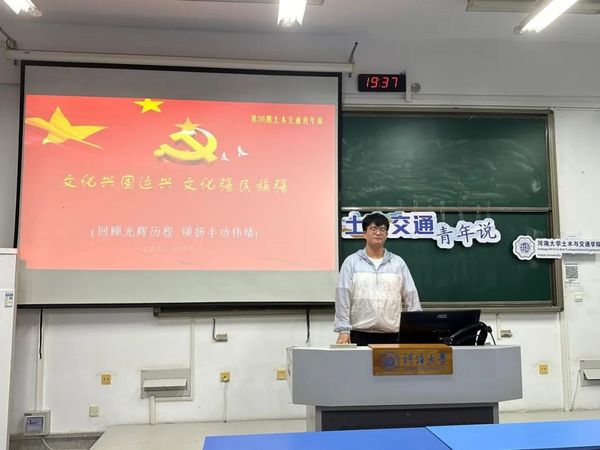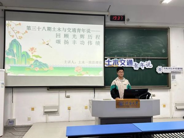 2024年10月27日18:30,由土木与交通学院团委主办,团委青年发展部承办的第三十八期土木交通青年说同时在江宁校区励学楼103和金坛校区A111成功举行。本期土木交通青年说邀请到土木院本科生王艺涵、徐子乐、彭理佳、赵佳择和吴涵钧五位主讲人,本科生22级和23级部分同学参与了本次活动。