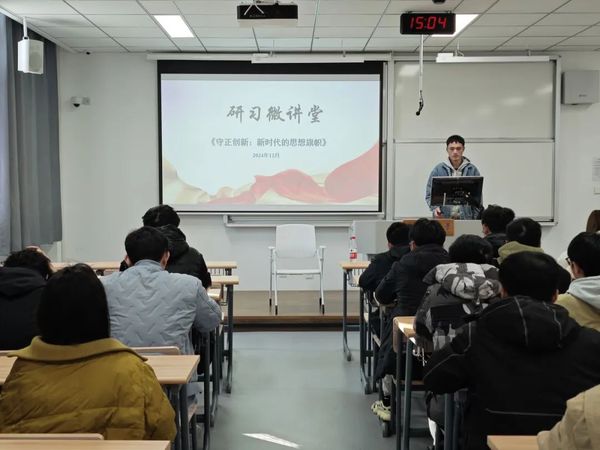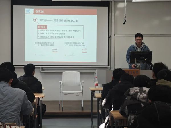 接着,睿思部部长李志坤介绍了社团品牌活动——研习微讲堂,分享了自己学习《习近平:必须坚持守正创新》的心得体会。自2013年至2024年,习近平总书记多次强调,守正创新是新时代治国理政的核心思想,要求在坚持马克思主义和中国特色社会主义的基础上,推动理论、实践、制度和文化创新,确保中国特色社会主义沿正确方向持续发展。守正创新不仅仅是对现有理论的传承,更是对未来发展的预见与引领。未来需要继续深化理论与实践的创新,推动国家各领域不断向前发展。