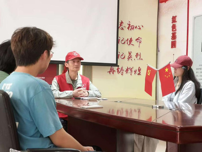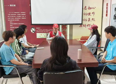 活动伊始,志愿者们围坐在红色教育基地的会议桌旁,认真聆听基地负责人童老师的分享。令人肃然起敬的是,童老师是一名退伍军人,退伍后依然坚守奉献,投身于红色教育基地的工作,兼顾陪伴老人、开展社区服务等多项事务。在谈话中,他以真挚而恳切的话语,传递出深沉的爱国情怀。他寄语志愿者们要热爱祖国,坚决抵制崇洋媚外思想;大力倡导支持民族品牌、助力国货发展,强调只有凝聚国人力量,才能推动国货走向世界、做大做强。