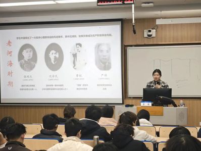 最让现场新生动容的,是 “老河海时期” 青年榜样分享环节。PPT 上依次呈现张闻天、沈泽民等前辈的珍贵影像,李老师结合校史脉络深情讲述,将前辈们胸怀家国、矢志报国的赤子之心娓娓道来,让新生们真切感受到河海学子一脉相承的责任担当与家国情怀。